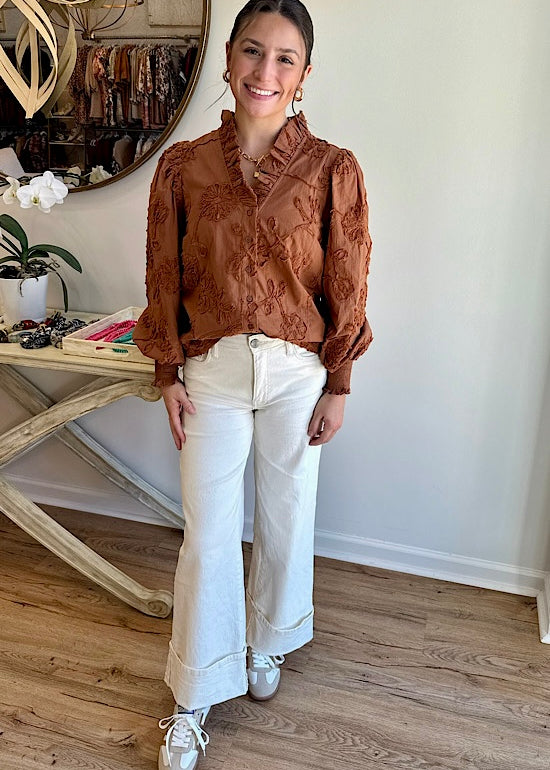 Madison Mathews Chocolate Brown and Off White Embroidered Skirt