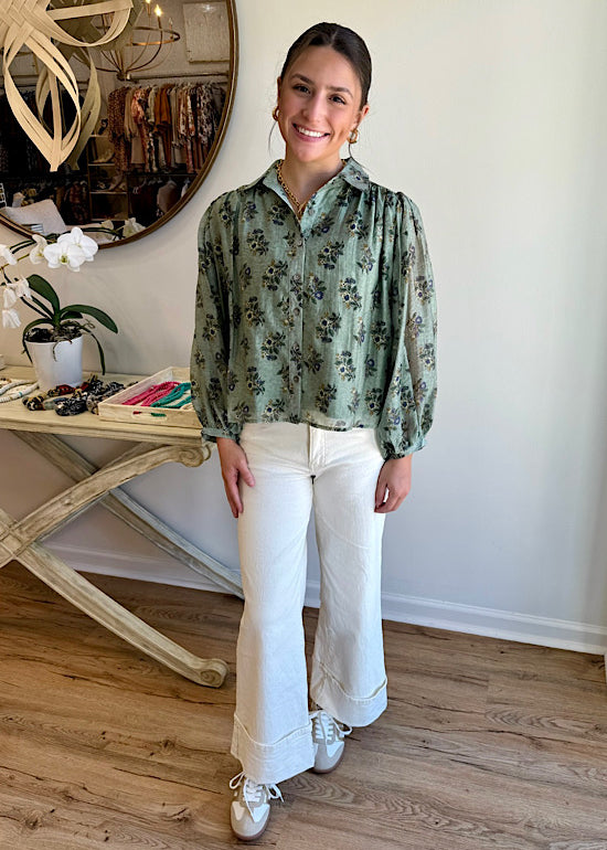 Sage Floral Top