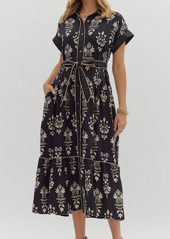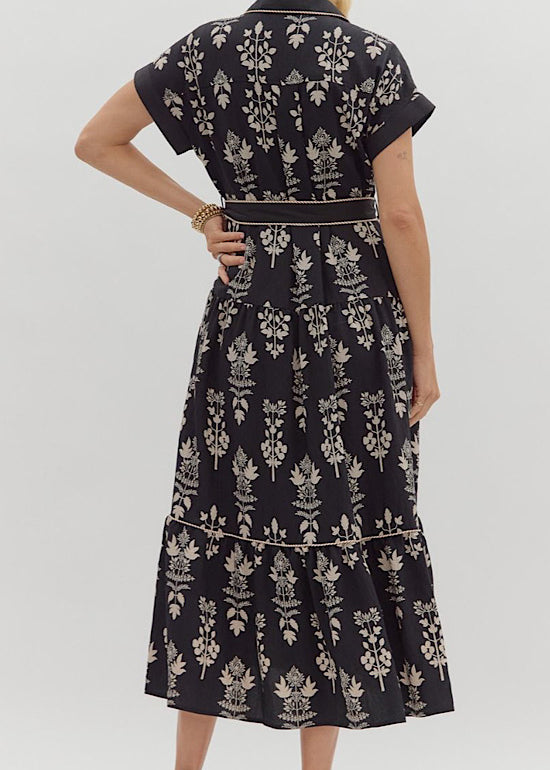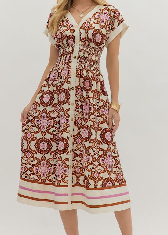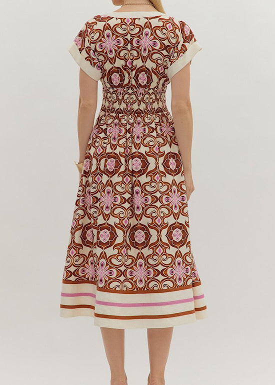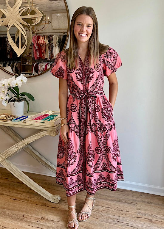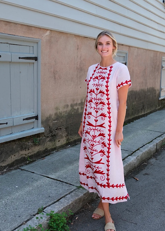 Madison Matthews Anne Maxi Linen Dress Shell Pink with Red Embroidery