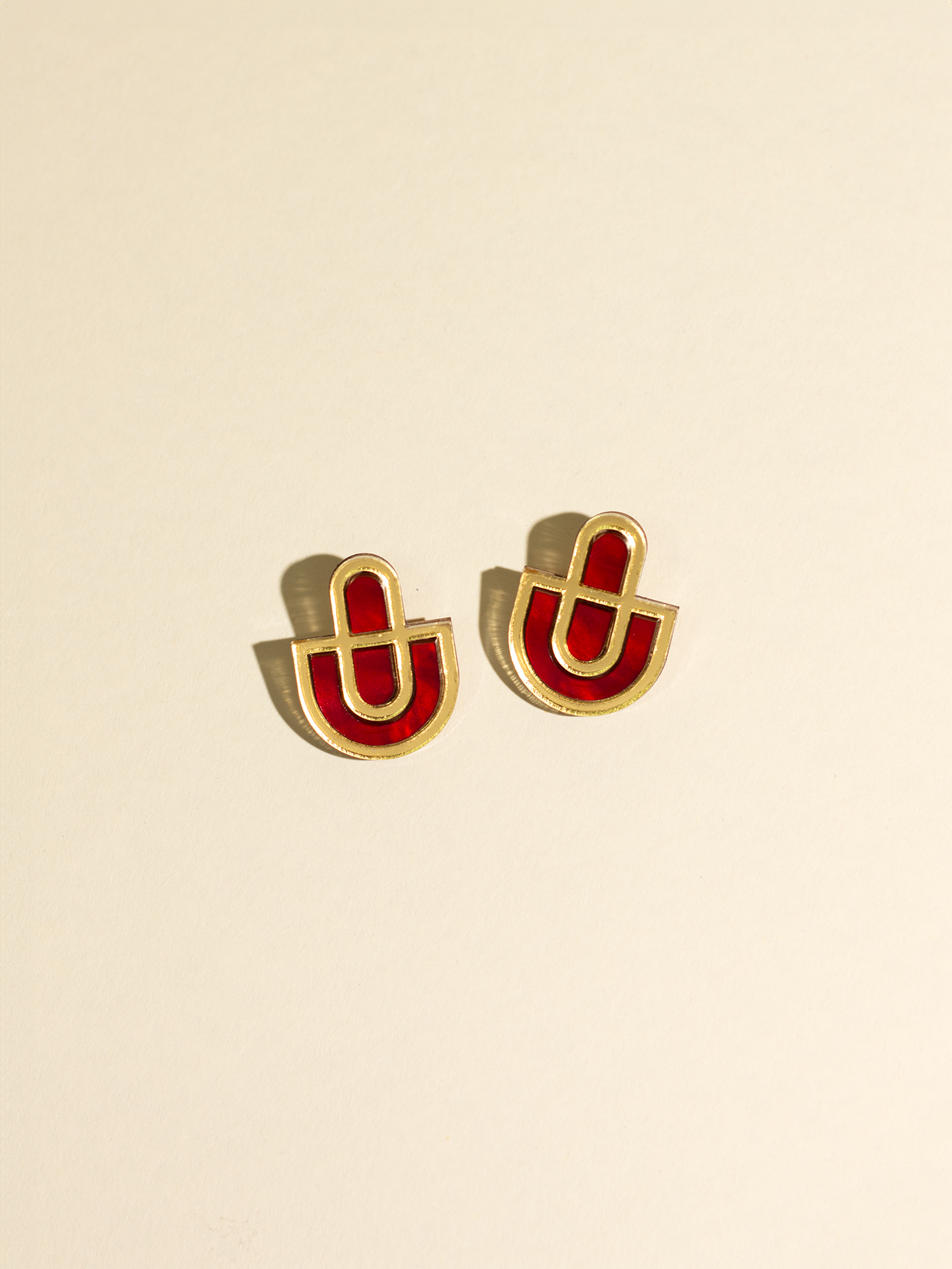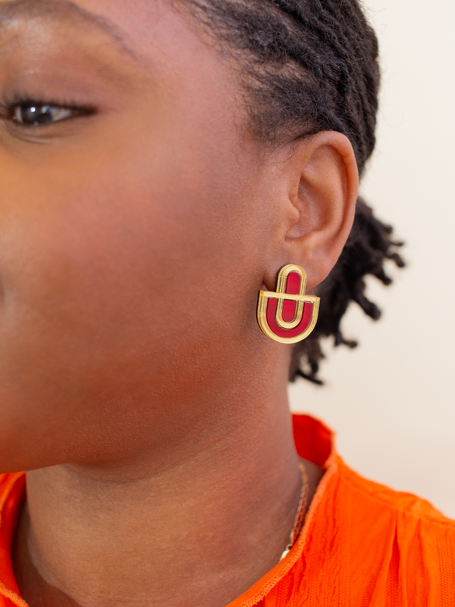 Devin 2 - Red Gold Colorful Acrylic Statement Stud Earrings