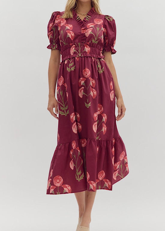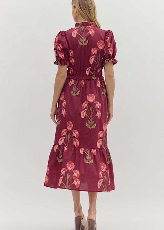 Madison Matthews Sara maxi Dress in Long Sleeve Red Linen