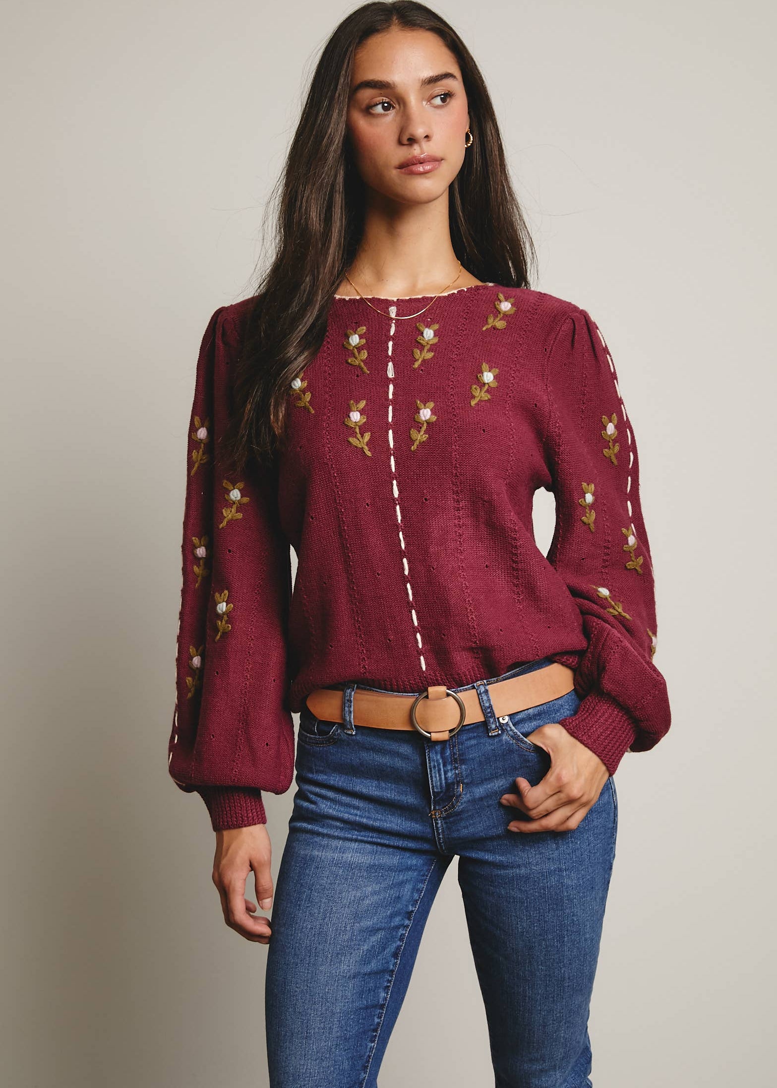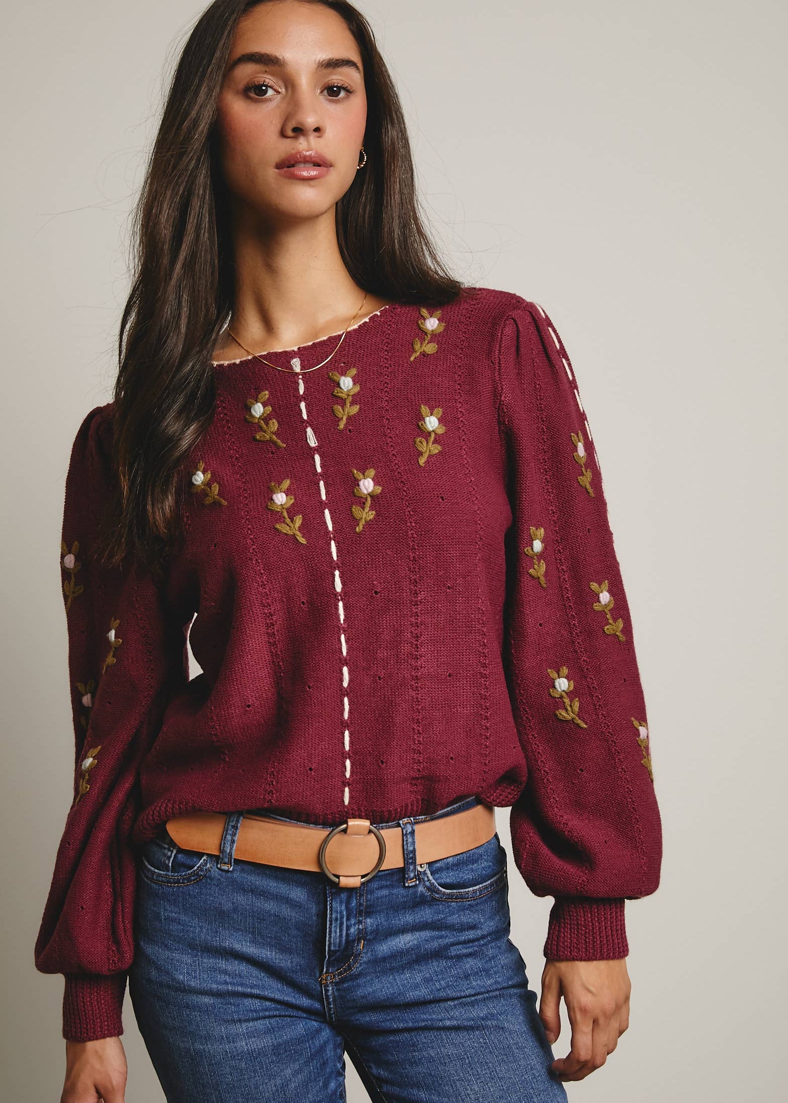 Daisy Embroidered Collar Knit Sweater FSW0015