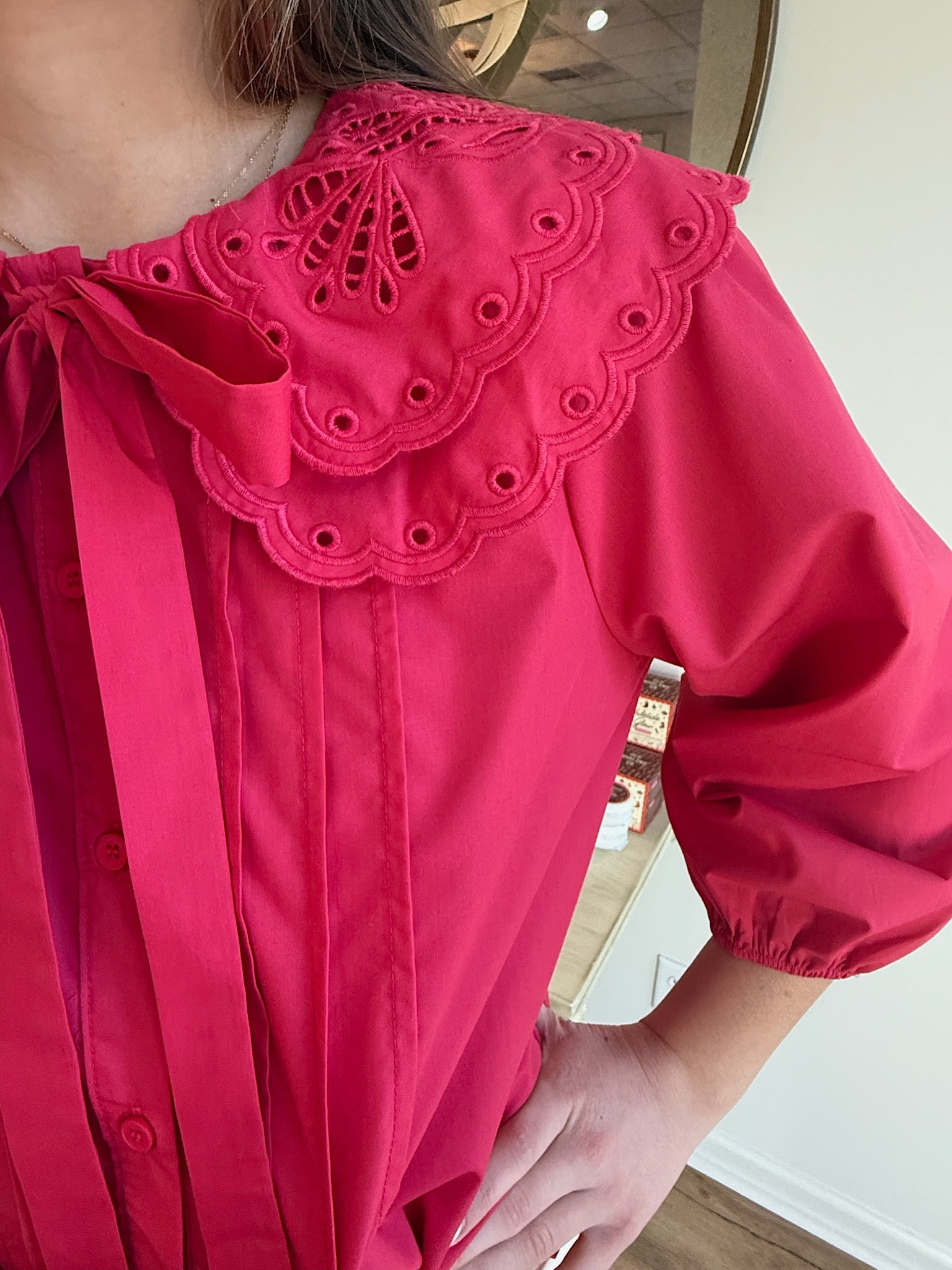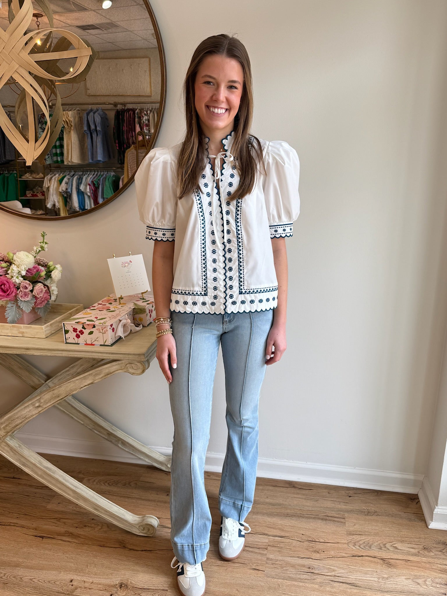 Light Blue Cropped Button Down Long Sleeve Shirt