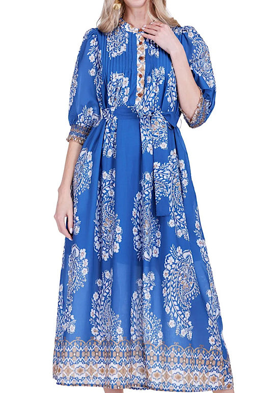 Joy Joy Pin Tuck Maxi in Indigo Oasis