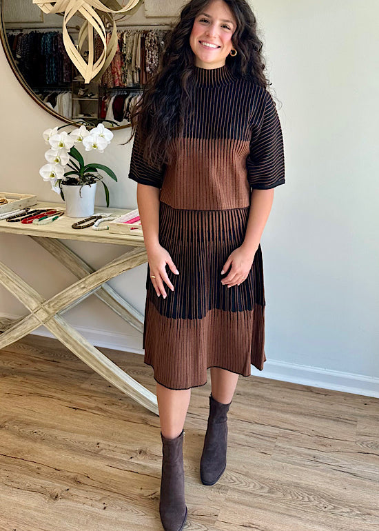 Black and Brown Midi Skirt