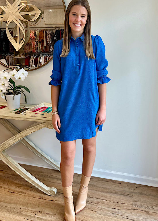 Joy Joy Placket Collar Dress in Royal Blue