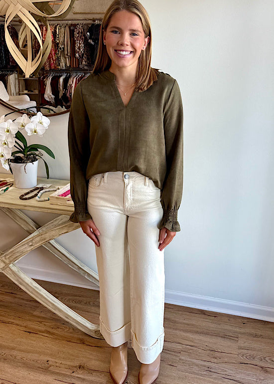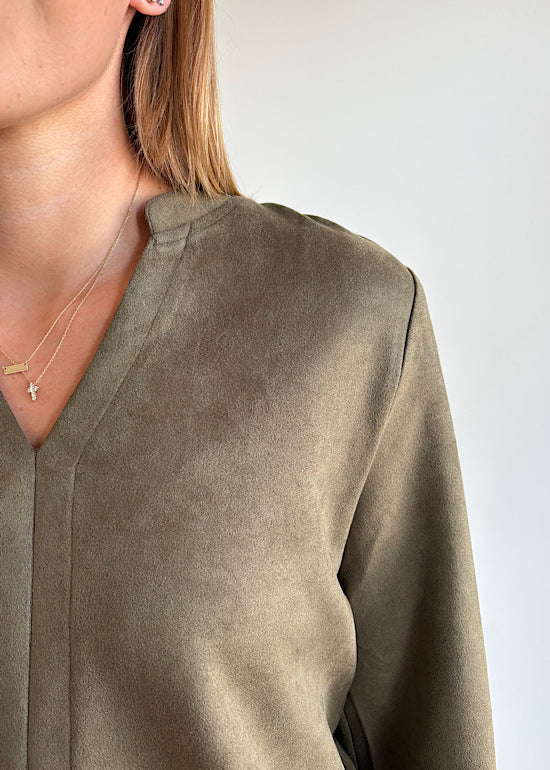 Faux Suede Long Sleeve Top