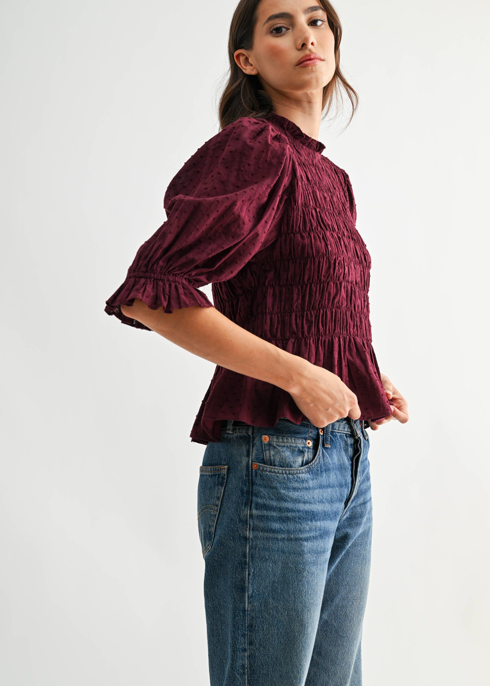 SMOCKED PEPLUM PUFF SLEEVE TOP