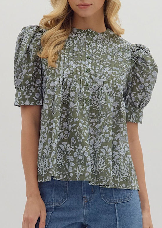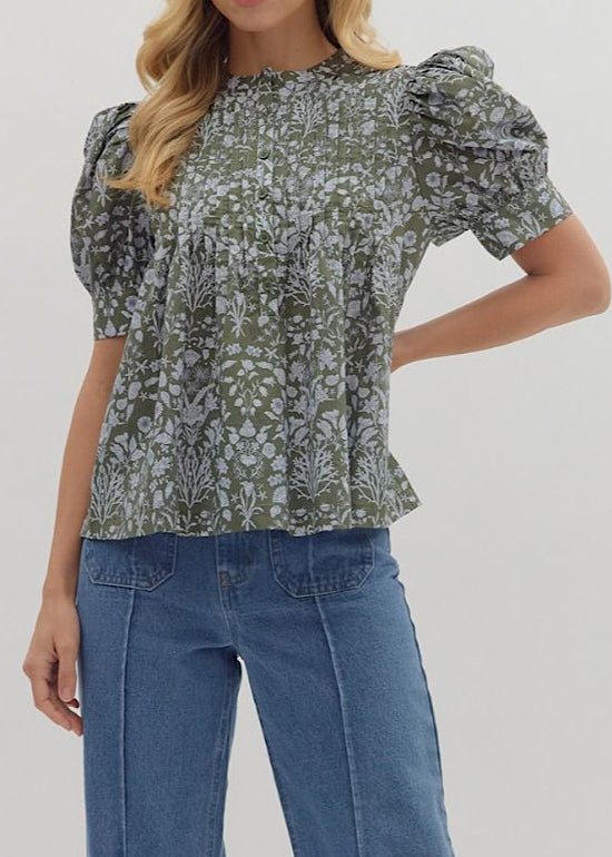 Floral Long Sleeve Top in Olive