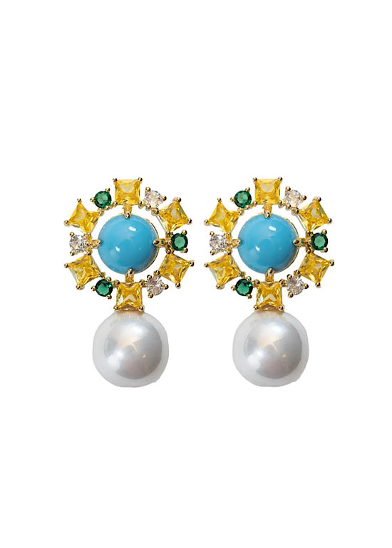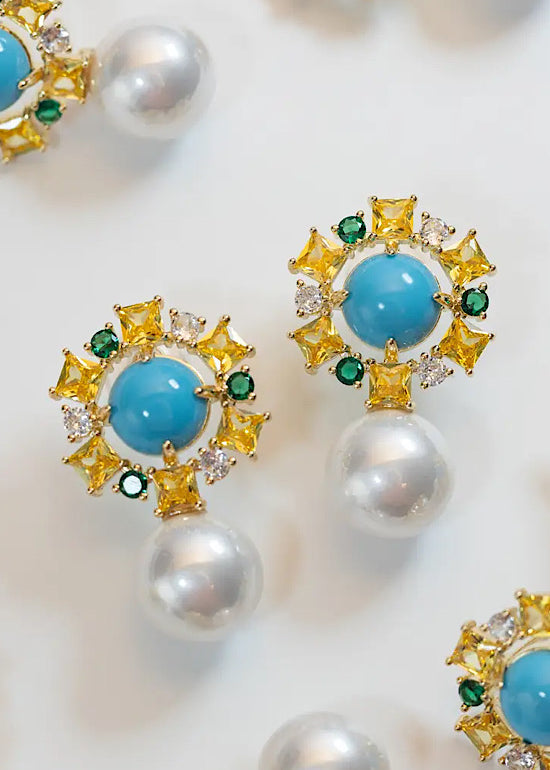 Palm Beach Glam Vintage Pearl Turquoise Statement Earrings