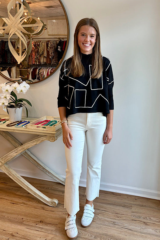Aja Lightweight Sweater in Black Geo