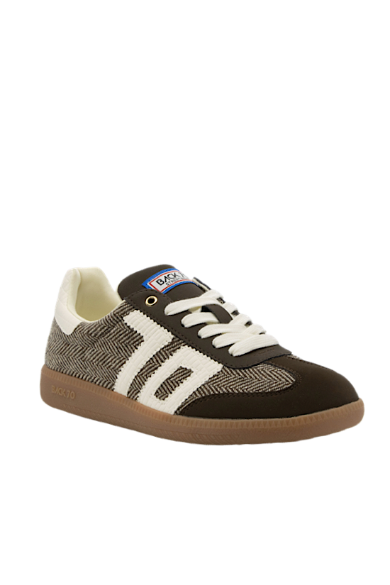 Cloud F serves up prep-school vibes with a chic twist - crafted in rich brown tweed with a velvety suede toe cap with some serious old money energy. This vintage-inspired sneaker blends classic textures with a sporty silhouette, finished off with a gum rubber sole and the iconic Back 70 mark. It¿s designer coded, a little nostalgic, and totally wearable. Ideal for women searching for brown preppy sneakers that feel tailored, timeless, and posh with an edge.