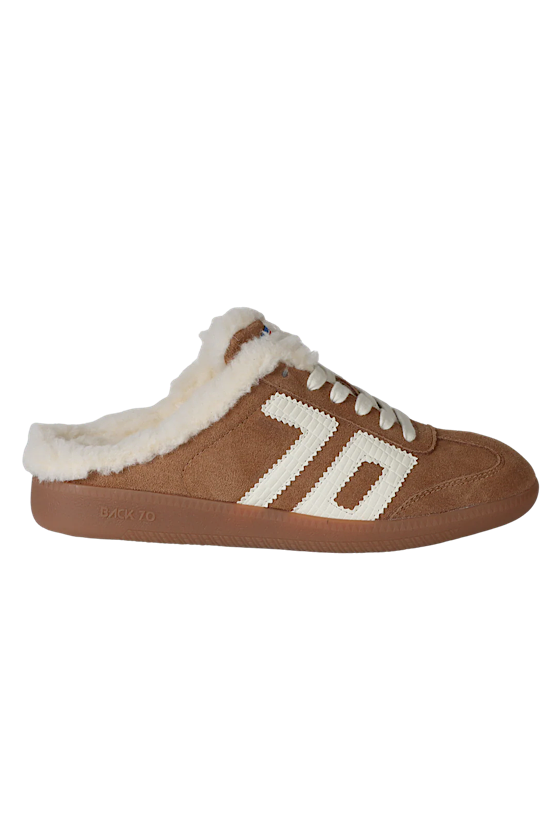 A cold-weather slip-on sneaker designed for women who want comfort without sacrificing fashion. Featuring plush faux shearling trim, genuine leather accents, and a vintage-inspired gum sole, it delivers the perfect balance of cozy and cool. The backless, mule-easy design makes it a breeze to slip on and go, while the signature Back 70 icon adds a bold finishing touch.