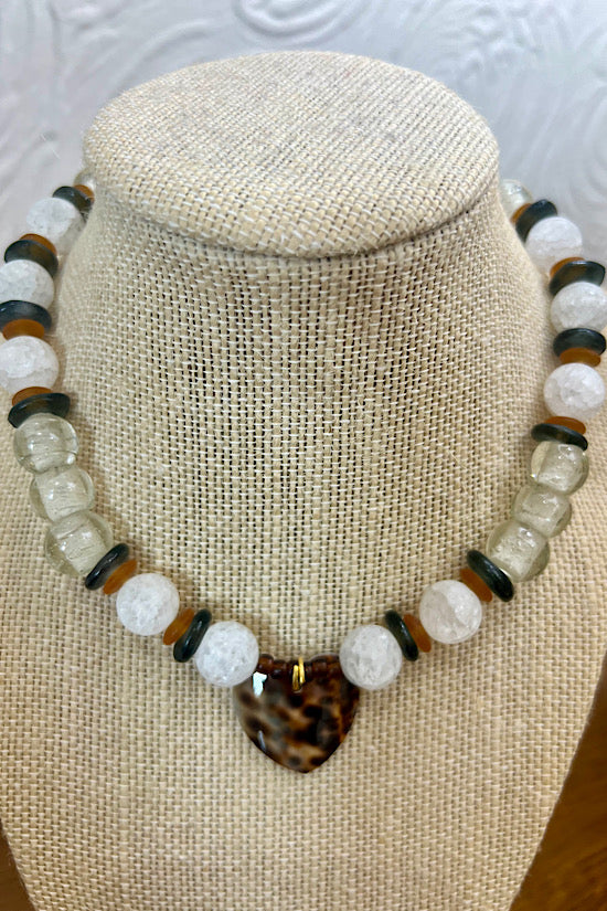 The Twine & Twig Classic Necklace is designed with a heart piece, globally sourced beads and makes the perfect layering necklace. Brass clasp closure allows for one size fits all.