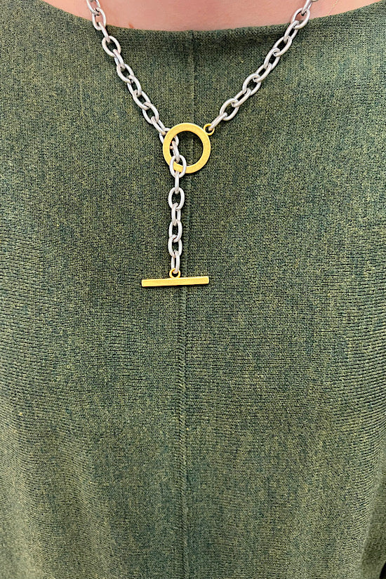 Debbie Necklace in Silver with Matte Gold Toggle