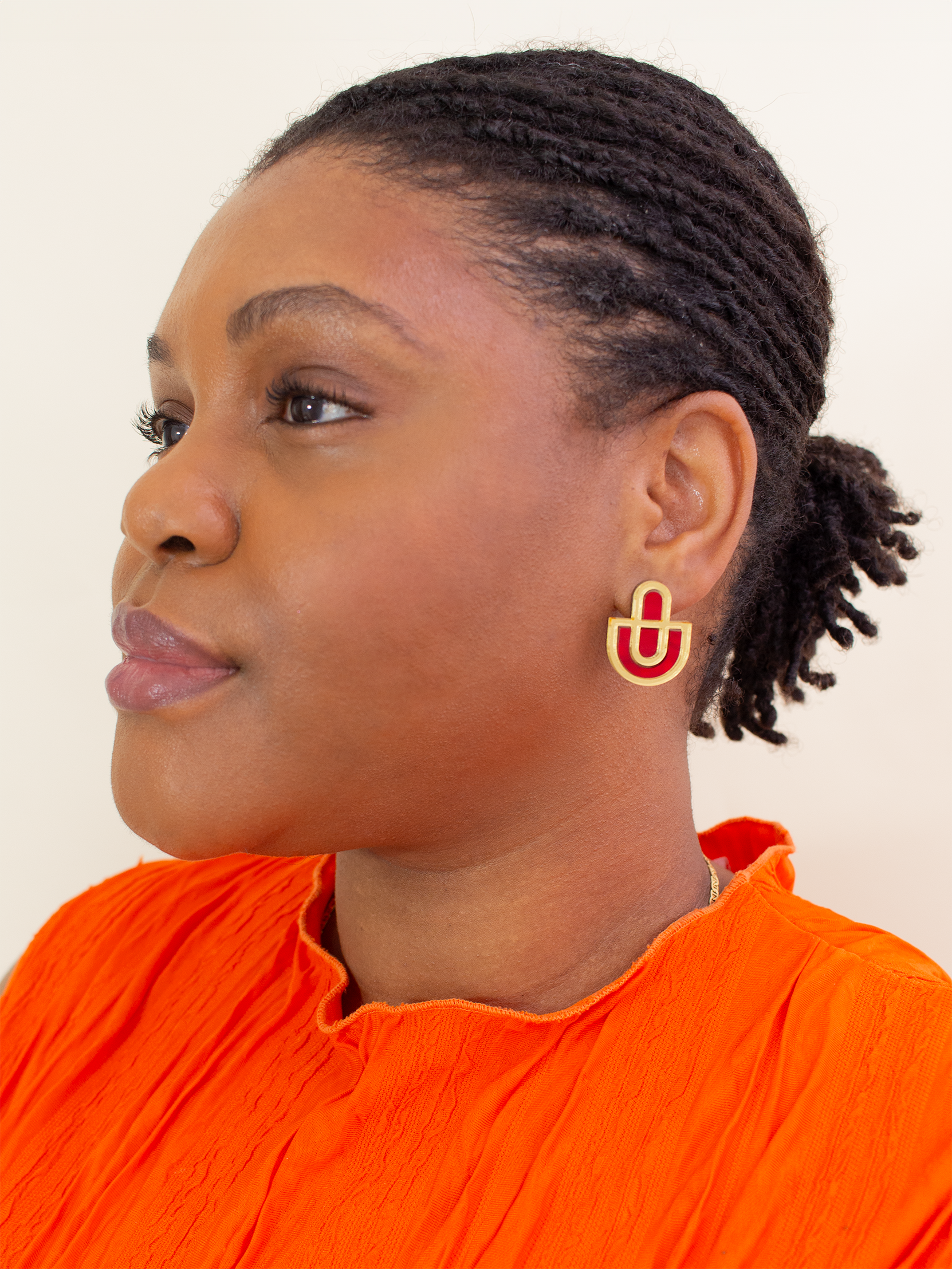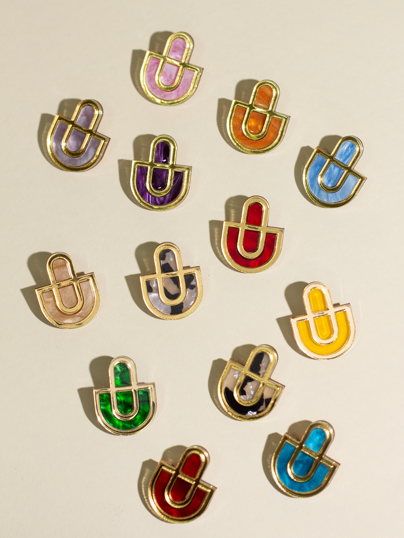 The Devin is the perfect entry-level bold statement earring. These geometric statement stud earrings are cut from durable, lightweight acrylic, finished, and assembled in our studio in Charleston, SC. Due to the handmade nature of these items, patterns and colors may vary slightly from one pair to the next.
