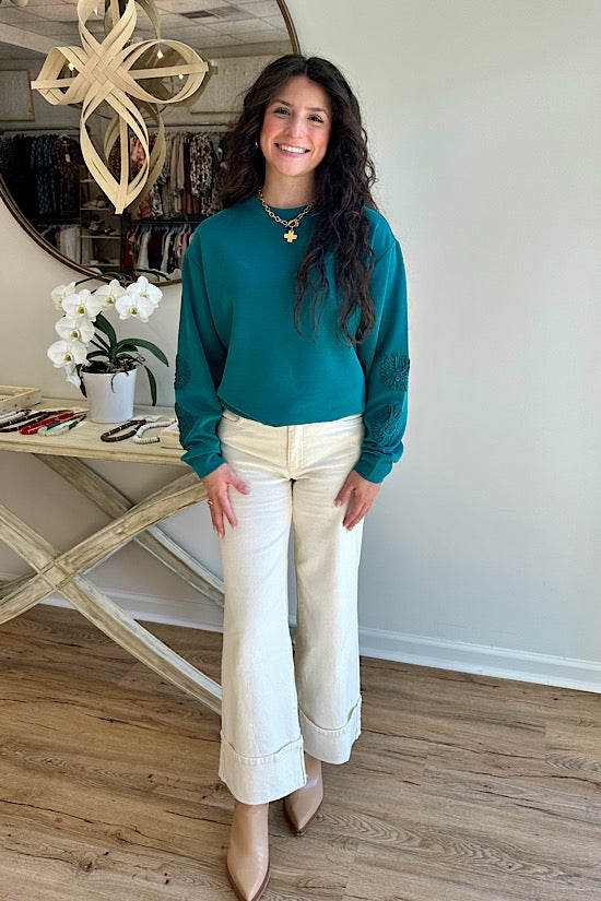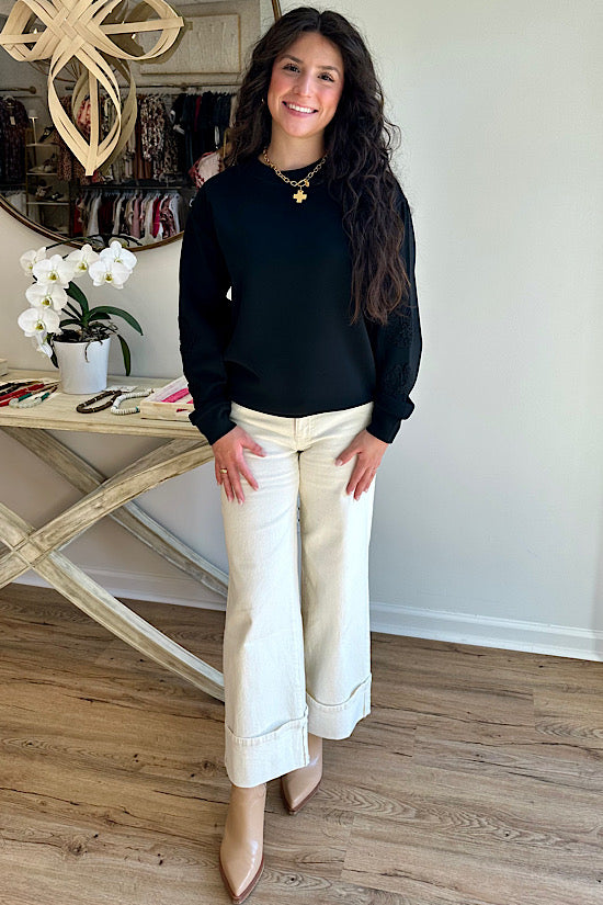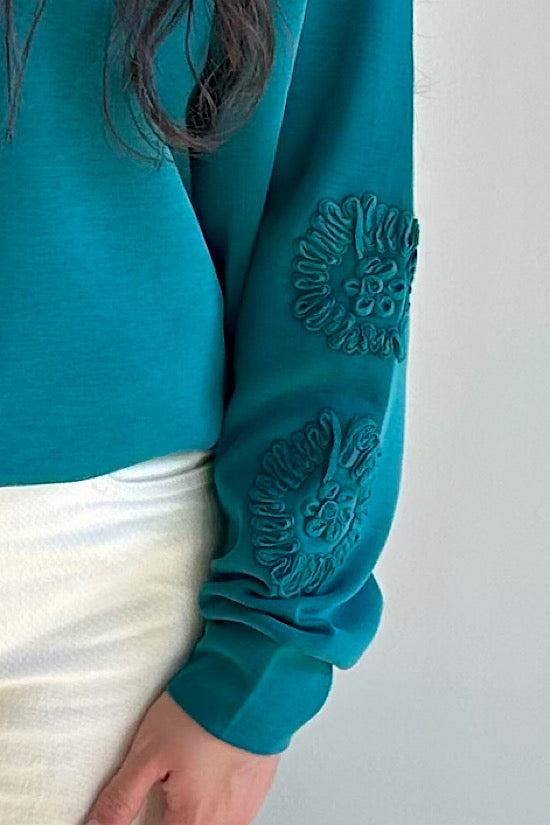 Esqualo Modal Top with Embroidered Floral Sleeve Detail