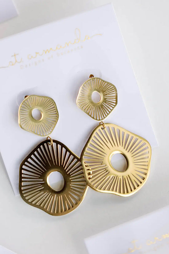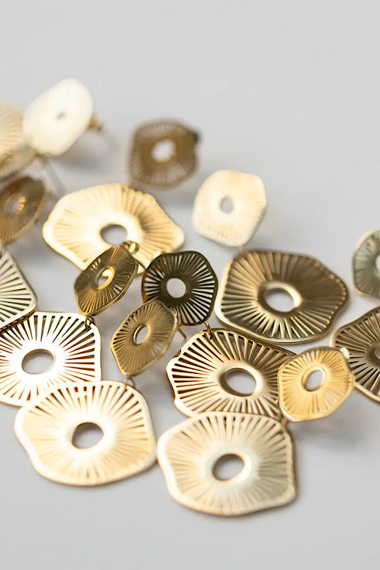 Featuring intricate open-work detailing, our new gold-toned Anemone Drops are the perfect compliment to crisp white and summer brights. The gold-plated alloy is weightless and the design is perfectly sized at 2.5”.