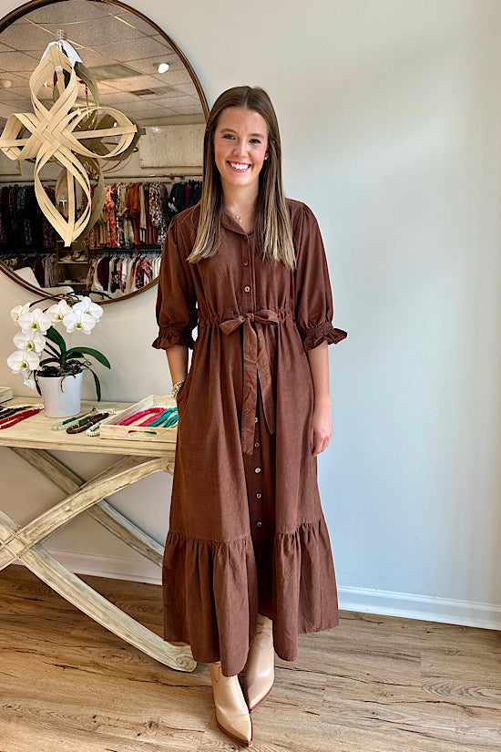 The Catherine dress was designed with feminine ease in mind.  Classic style elements like a tiered hem, stand collar, wide self belt...but with a twist! This puff, double elastic sleeve and empire waist will not disappoint and will be your go-to for all events!