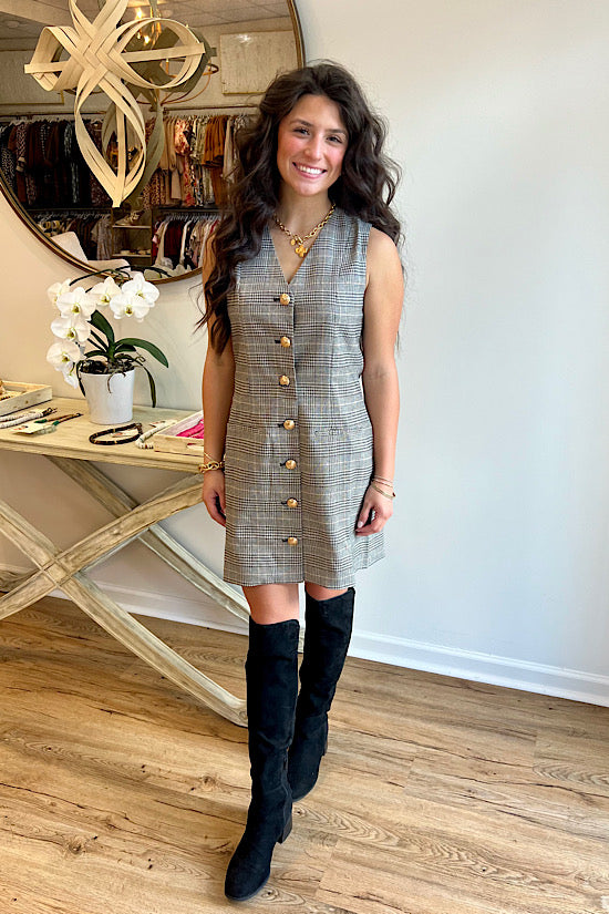 Joy Joy Button Up Plaid Dress
