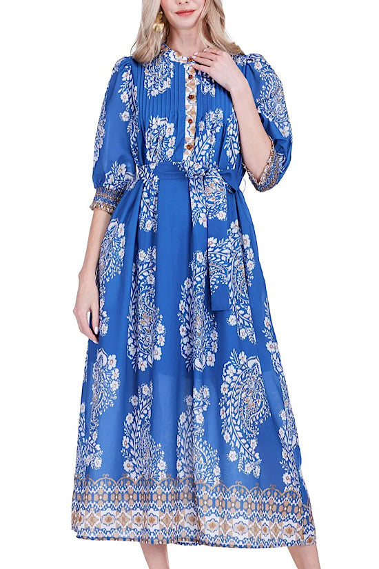Joy Joy Pin Tuck Maxi in Indigo Oasis