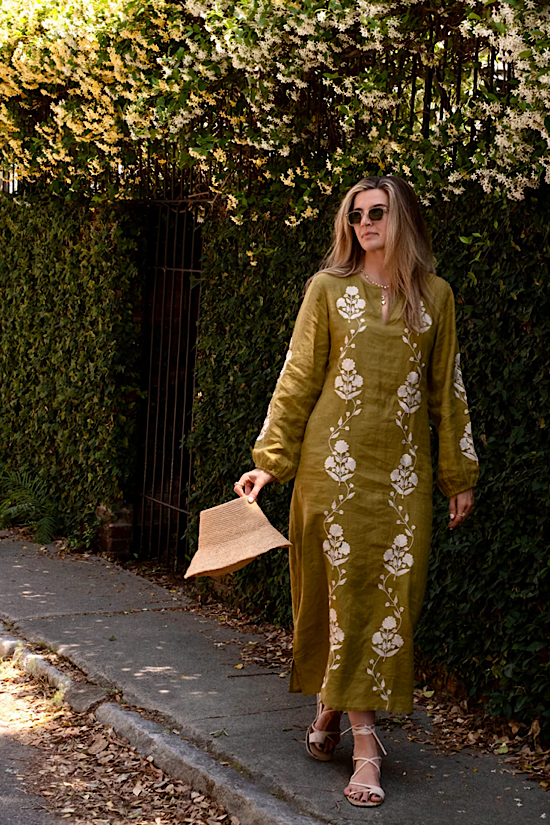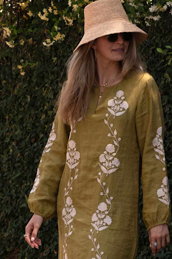 Madison Matthews Sara Maxi Dress in Long Sleeve Bay Leaf Green