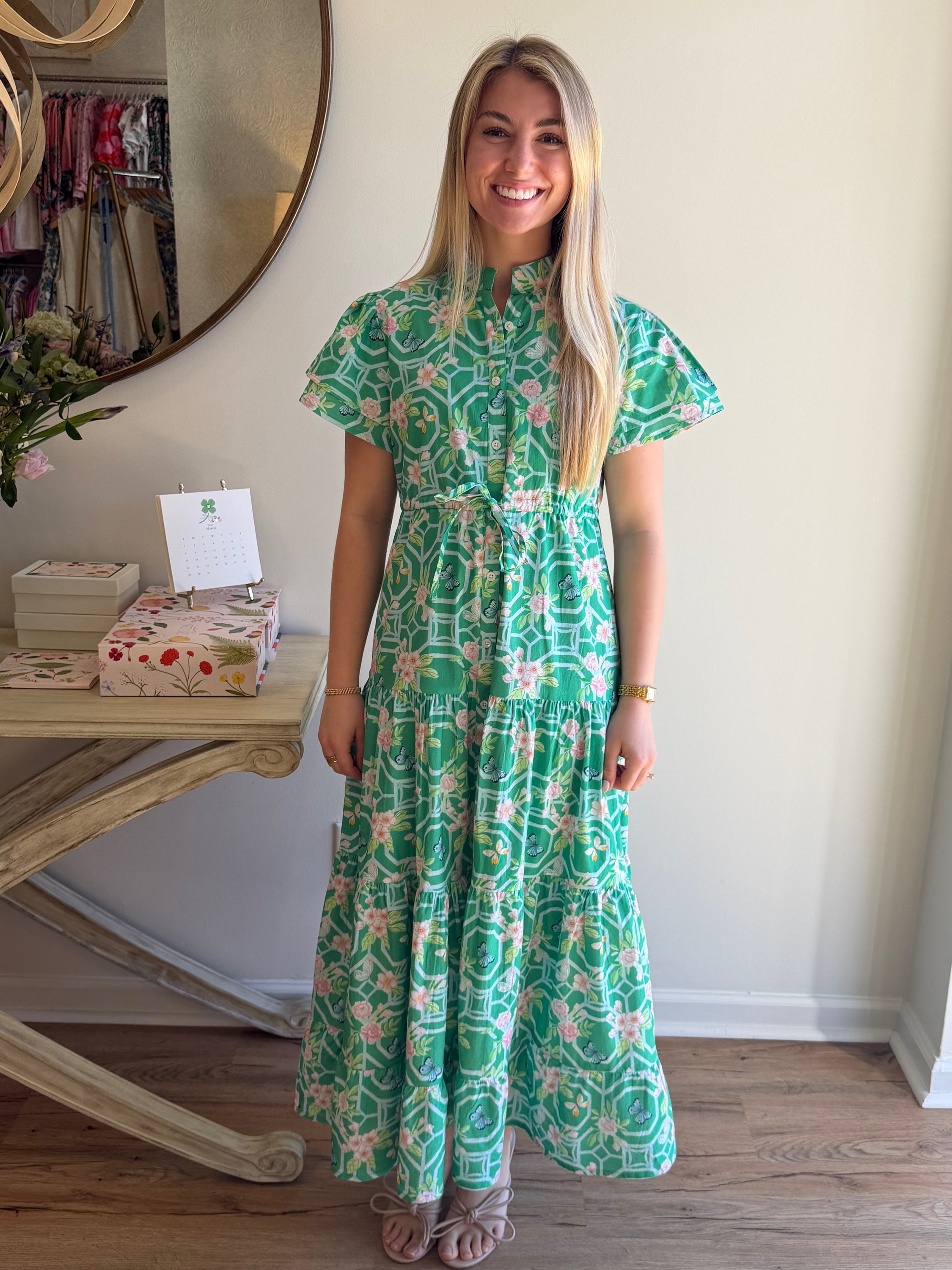 Introducing the Belle, the perfect warm weather dress for every occasion. With a relaxed fit, collared neckline, banded cap sleeves, and a shirred waist, this dress flatters every figure. Complete with a button front closure and side pockets, it's as stylish as it is functional.