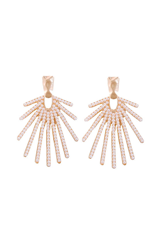 We love a good sunburst design! These neutral gold and white drops are the perfect compliment to your fall prints and jewel tones, while the festive look will carry perfectly into the holidays! 2" Long Post Back Hammered Gold Upper