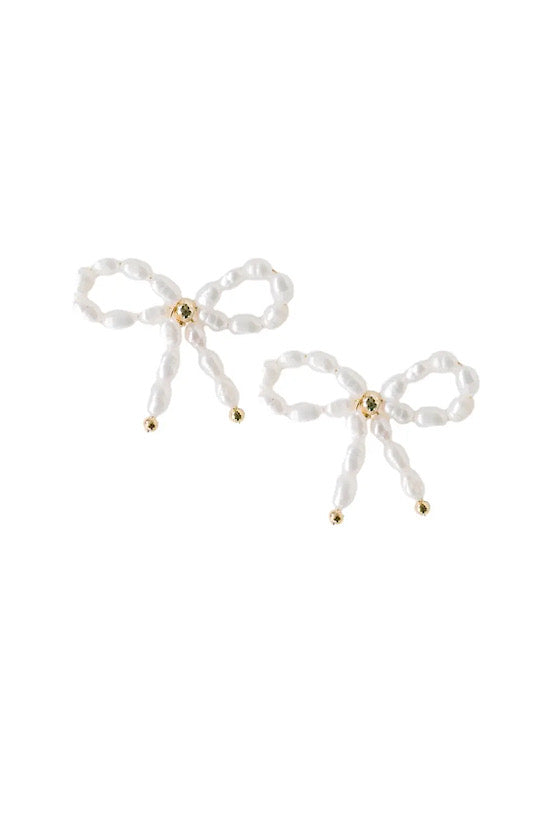 Petite Pearl Bow Stud Holiday Earrings