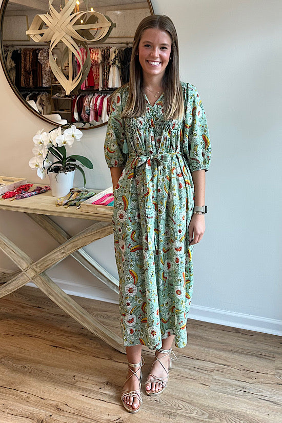 Printfresh India Bloom Dress in Sage
