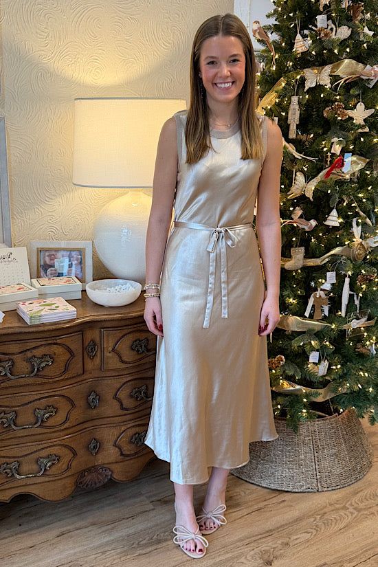 Sleeveless Satin Dress in Champagne