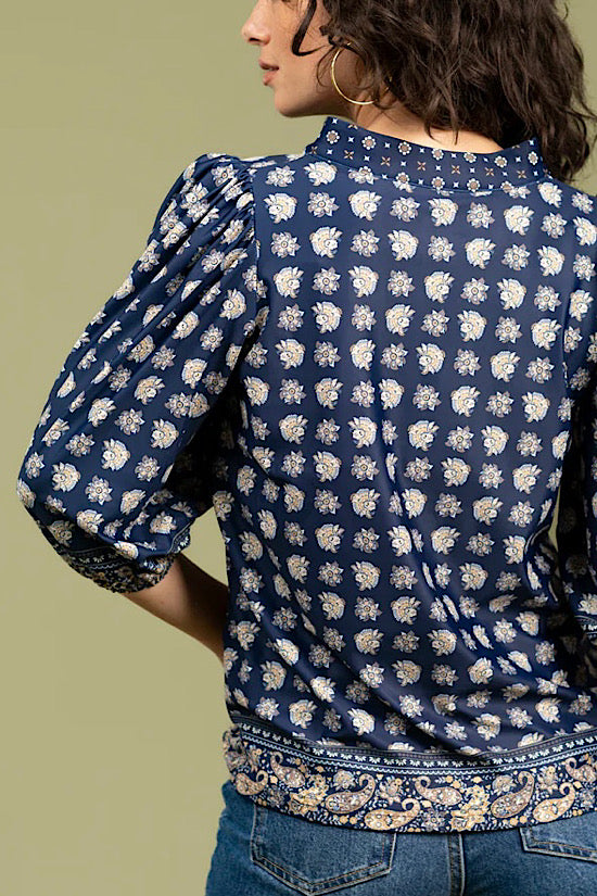 • 3/4 sleeves with elastic at cuff