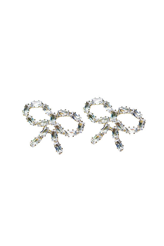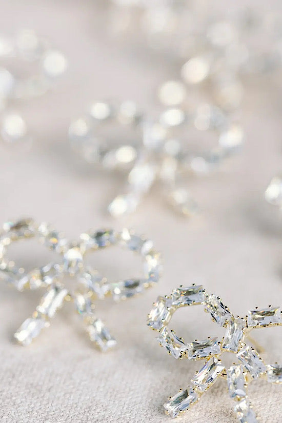 Measuring 1" wide, sparkling interlocking diamonds combine to create a bow silhouette, packing a ton of Christmas and holiday statement in a small earring package. These chic earrings are perfect for the office, dinner, or cocktails. Ideal for easy holiday gifts, this crowd-pleasing style effortlessly enhances any outfit for the upcoming holiday season.