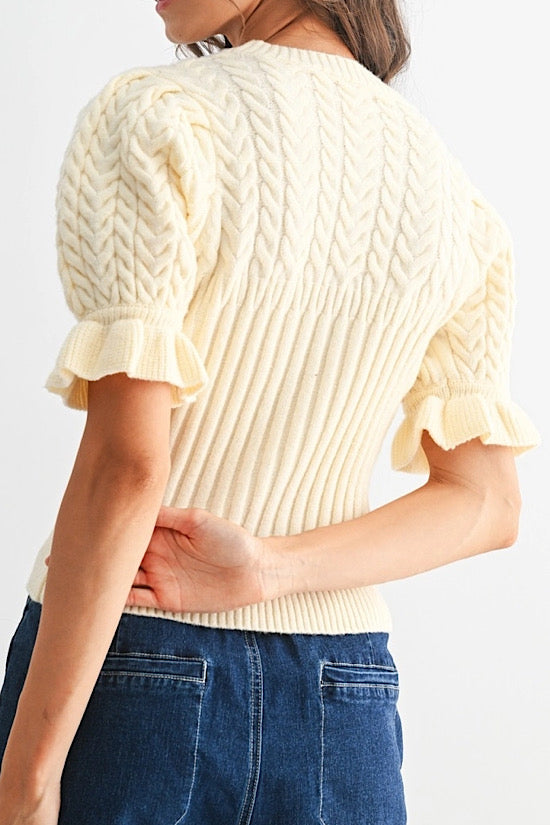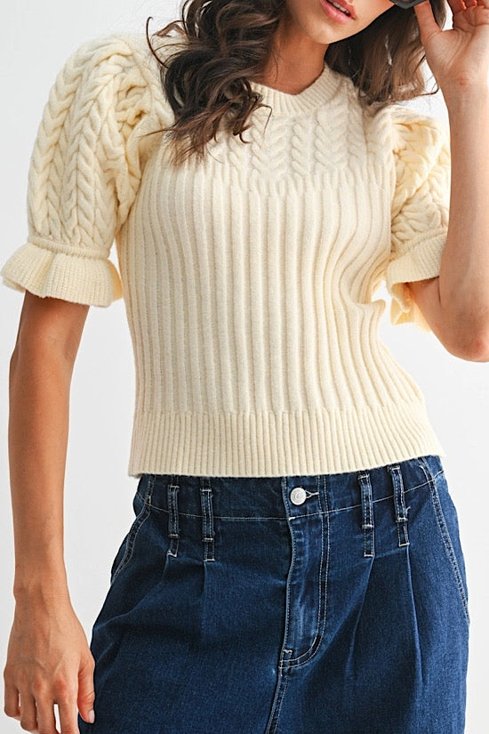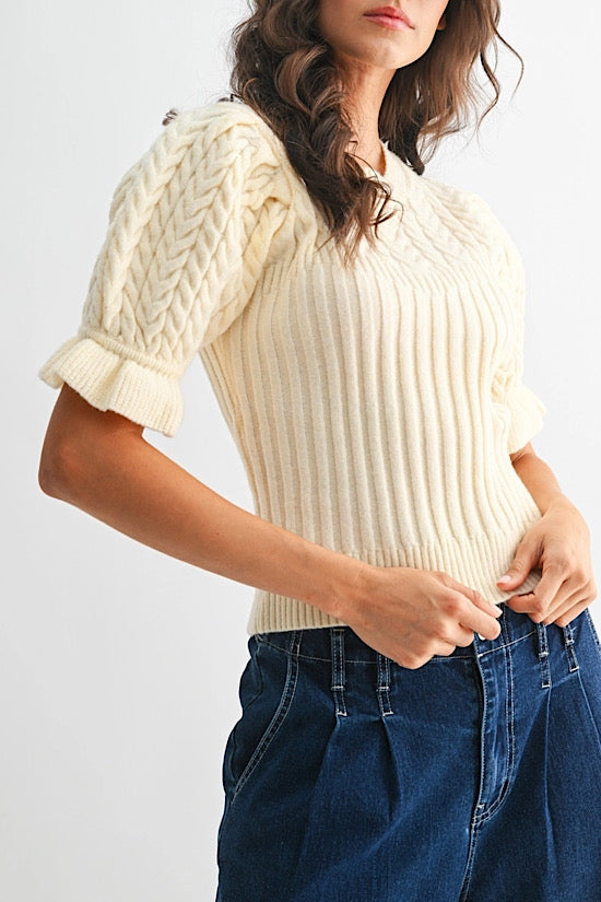 Step into comfort and elegance with our stylish cable knit sweater. This versatile piece combines classic design with modern flair, making it perfect for any occasion. Model is wearing a size S Model : 5'9" - B 32" - W 24" - H 36.5"