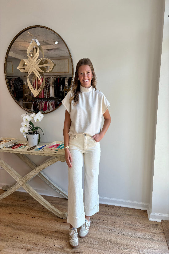 The Short Sleeve Faux Suede Top