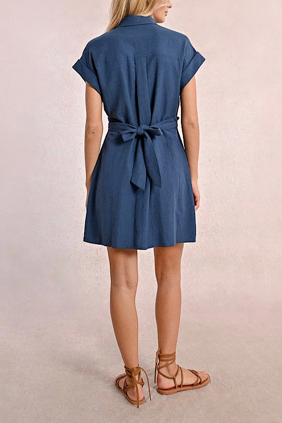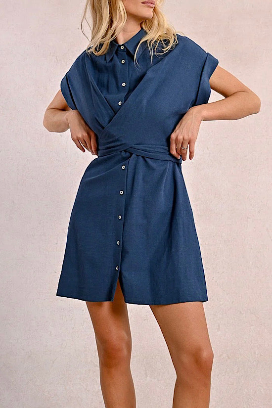 FINAL SALE: Tie Back Shirt Dress in Navy